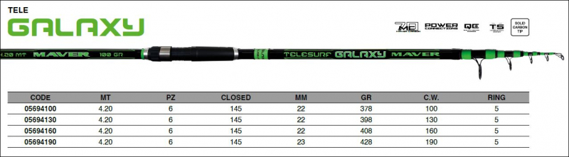 Maver Brandungsrute Telesurf Galaxy 4,20M, Modell 2024 bis 130 Gramm Wurfgewicht (für Überkopfwurf)